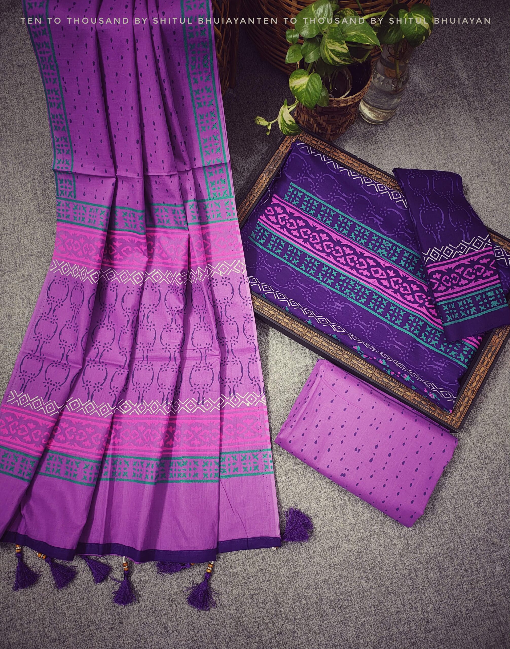 🌸কালার গ্যারান্টিসহ প্রিমিয়াম কাঠ ব্লক থ্রিপিস🌸