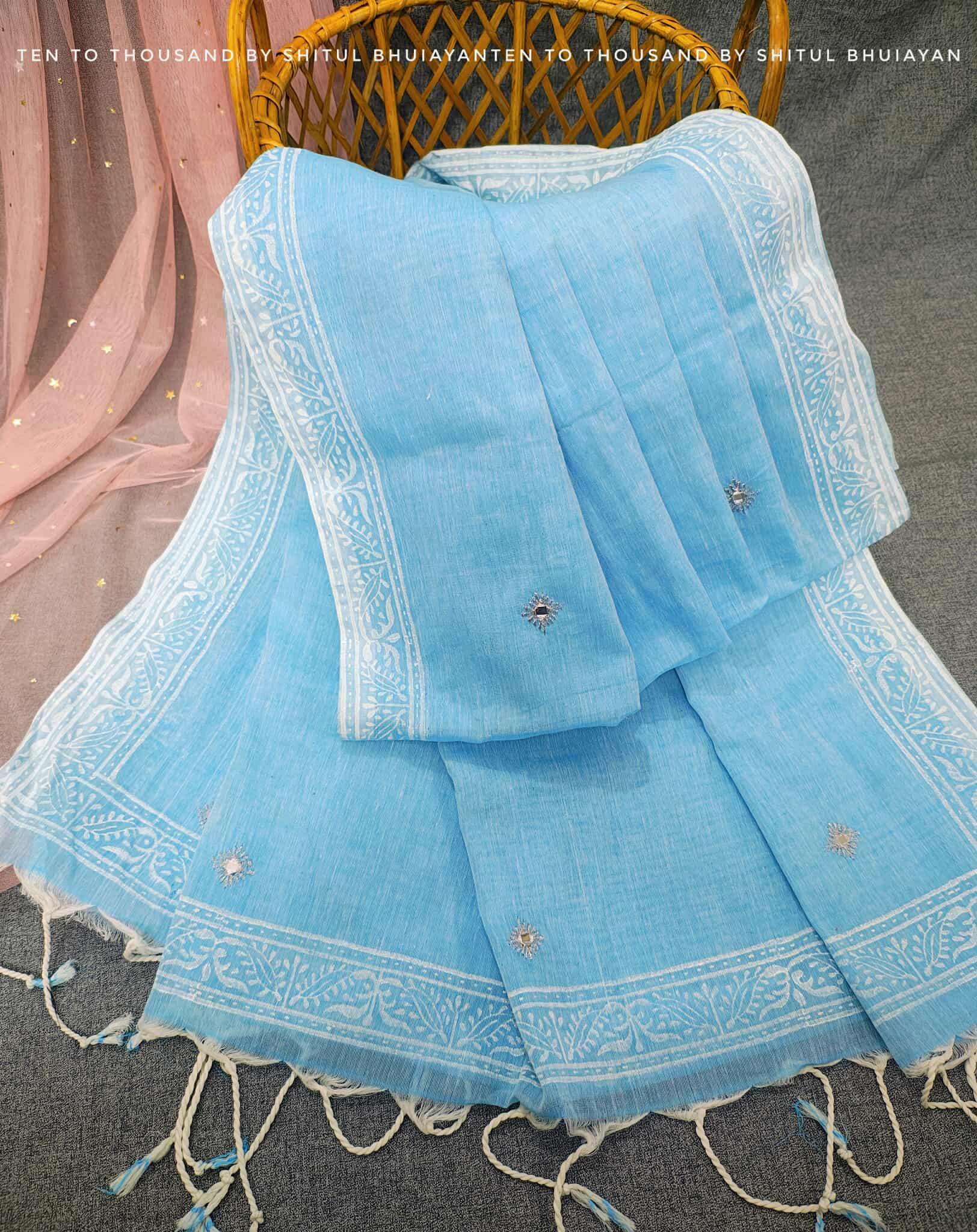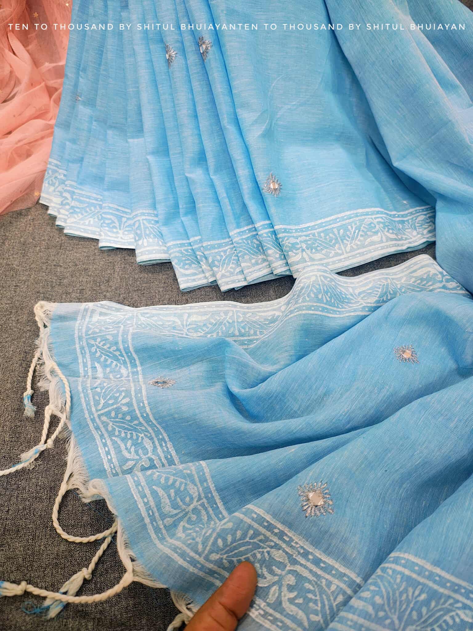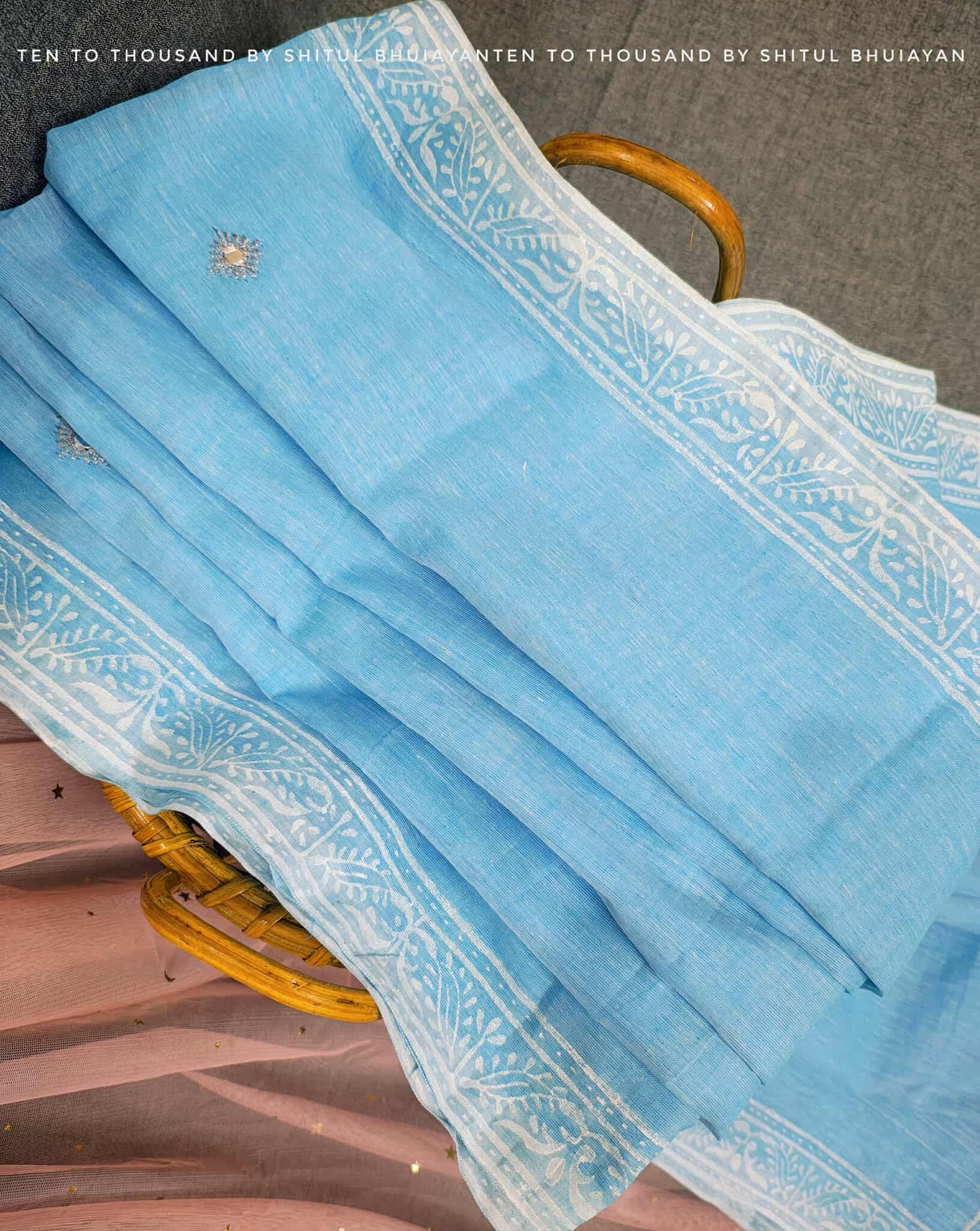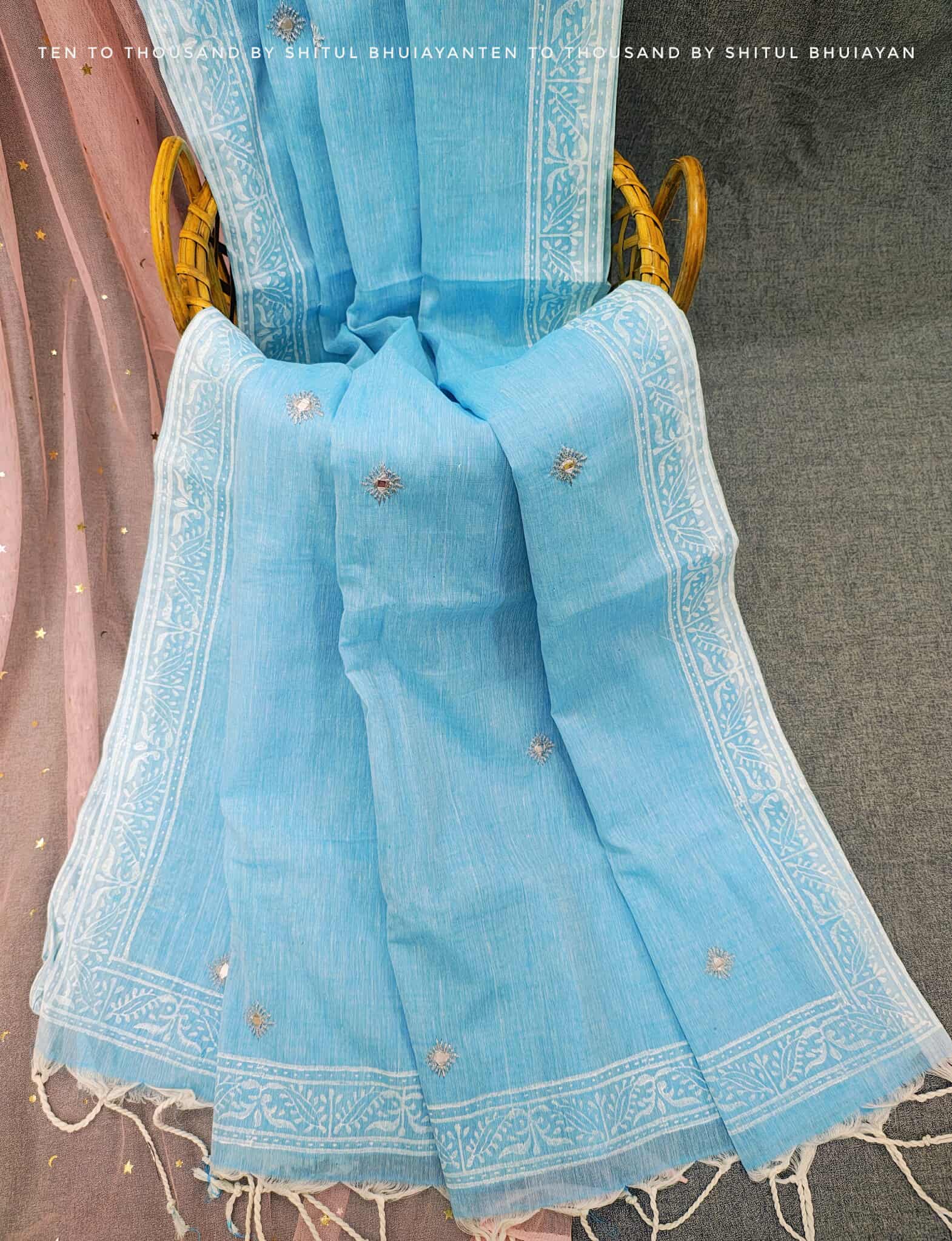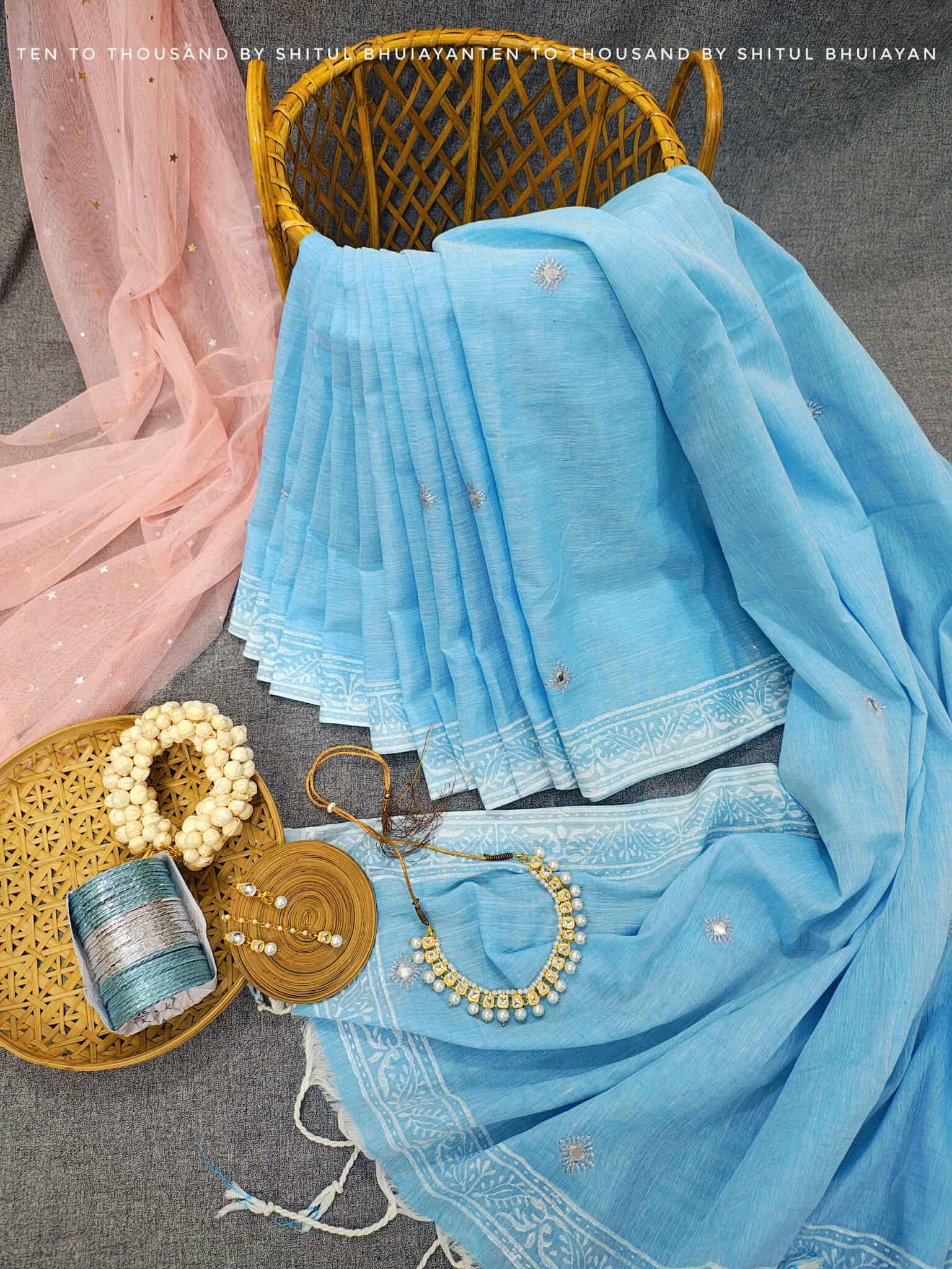 শাড়ির বিবরণ: চিকন সুতায় বোনা সুতি শাড়িতে ডলার ওয়ার্ক সাথে ডলারের চারপাশে এম্ব্রয়ডারি। পারে ব্লক করা।টার্সেল সহ ৭ গজ বা ১৪ হাতের শাড়িতে পাবেন রানিং ব্লাউজপিস।